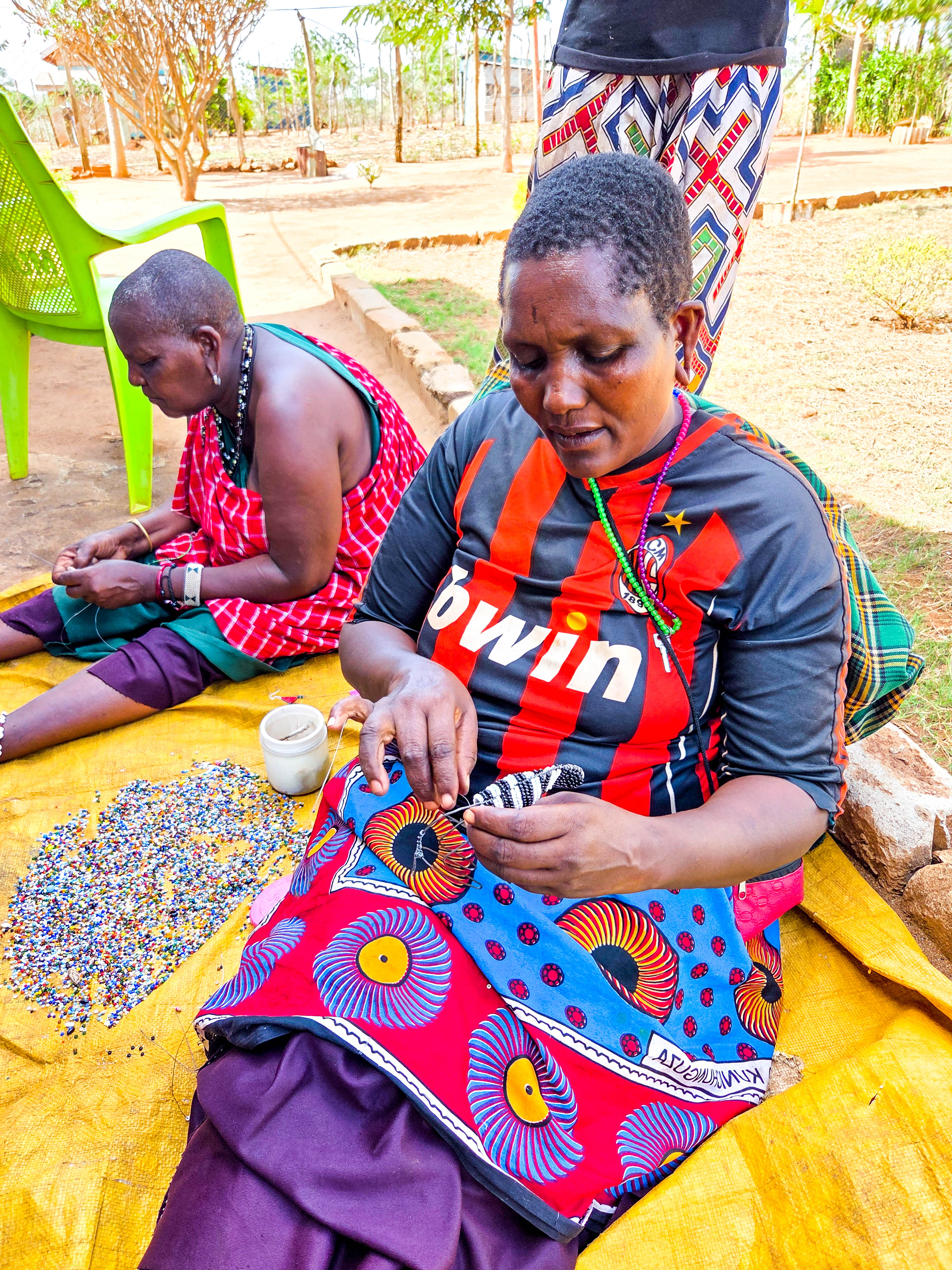 Developing advanced beadwork skills, combining traditional Maasai patterns with contemporary design elements